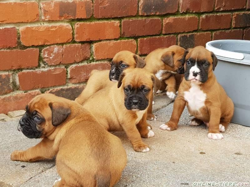 Die 4 süßen Boxerwelpen, sind am 13.09.25 geboren. Und die Welpen suchen ab den 15.12.25 ein schönes neues zu Hause. Die Welpen haben VDH Papiere. Sie sind bei der Abgabe mehrfach Entwurmt, Geimpft und Gechipt. Zu den Elterntieren, die Hündin ist 3 Jahre alt, HD und ED frei. Und Sie hat die Herzuntersuchung mit Grad 0 bestanden. Der Rüde ist 3 Jahre. Auch HD und ED frei. Und hat die Herzuntersuchung auch mit Grad 0 bestanden. Die beiden Elterntiere haben eine Zuchttauglichkeitsbescheinigung mit V1. Und unsere Zuchtstätte ist mit sehr gut bewertet wurden. Die Welpen wachsen bei uns in der Familie mit auf. Die Welpen sind vollständig geimpft und entwurmt und werden mit Registrierungspapieren, einer einjährigen Gesundheitsgarantie, medizinischen Unterlagen, tierärztlichem Gutachten, Transportbox, Gesundheitszeugnis und einem Starterpaket abgegeben. Die Welpen haben ein gutes Wesen und vertragen sich gut mit anderen Haustieren wie Kätzchen und Papageien. Die Kleinen sind menschenfreundlich.