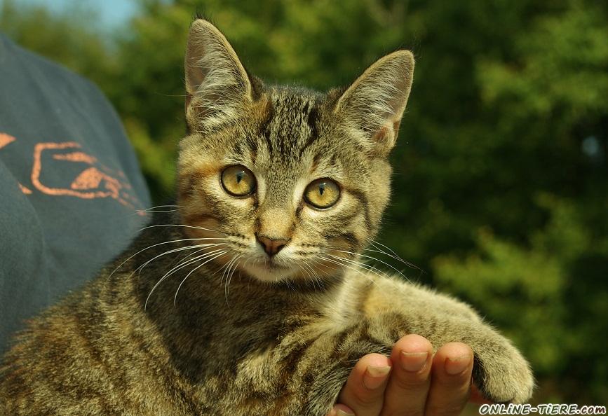 Dieses absolut hübsche Katzenmädchen sucht noch ein neues zuhause. Die kleine Faye ist mittlerweile schon 4 Monate alt. Sie lebt momentan bei mir im Stall und ist auch etwas schüchtern, jedoch eine ganz liebe. Wenn man sie erst einmal überredet hat, lässt sie sich gerne streicheln und hochnehmen. Mit etwas Geduld würde sie sicherlich genauso verschmust und anhänglich werden wie ihre Mutter, von der sie auch ihre schöne 3-Farbigkeit hat, getigert mit baunem einschlag und etwas weiß.